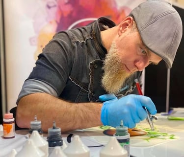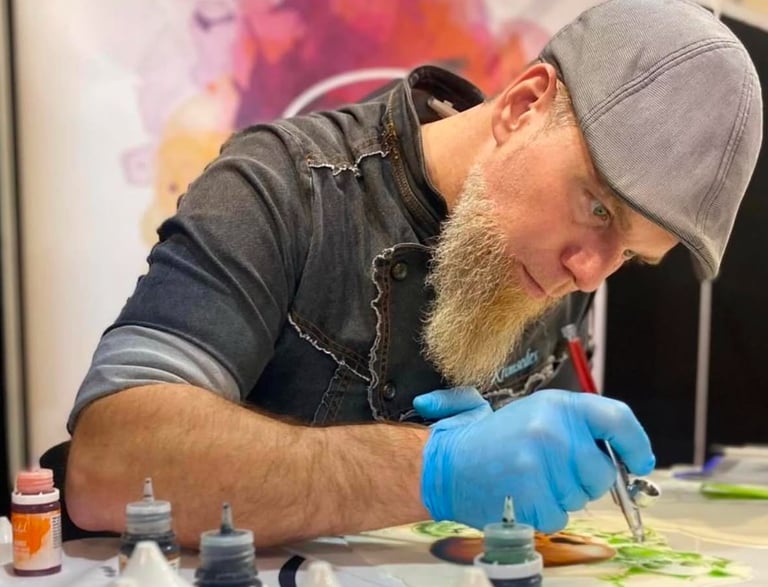 Aber auch als Künstler trete ich mit meinen Airbrush- Shows auf vielen Messen auf und begeistere die Zuschauer mit meinem Programm.